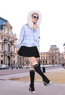 迪歐達貉子毛領(lǐng)中長款修身羽絨服