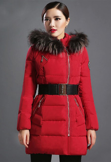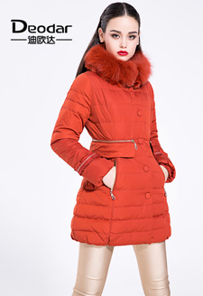 迪歐達毛領(lǐng)修身時尚中長款羽絨服